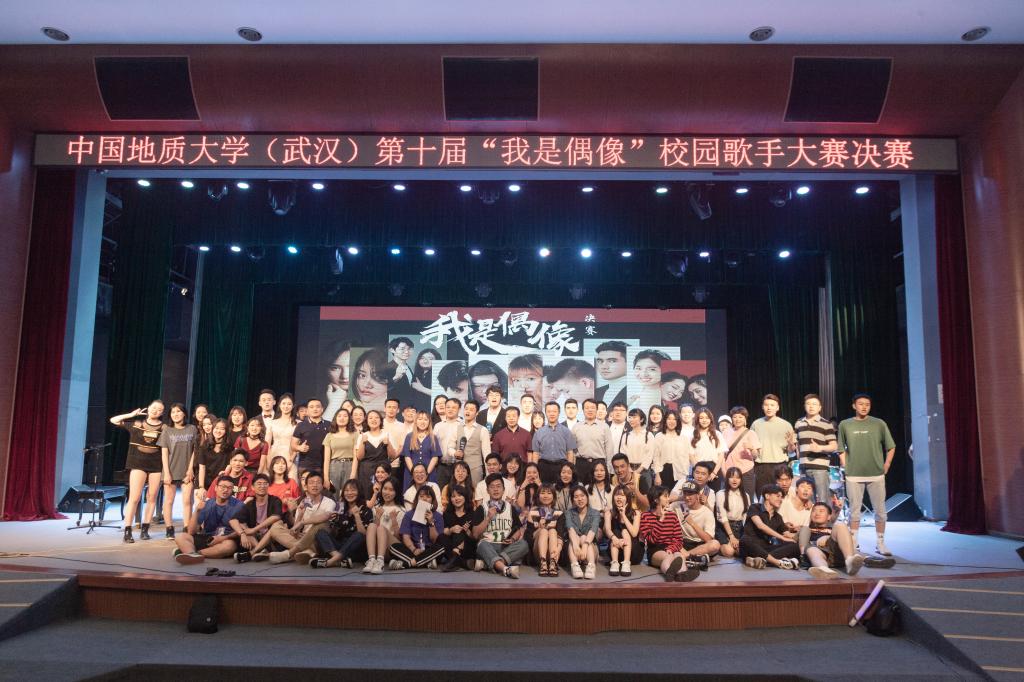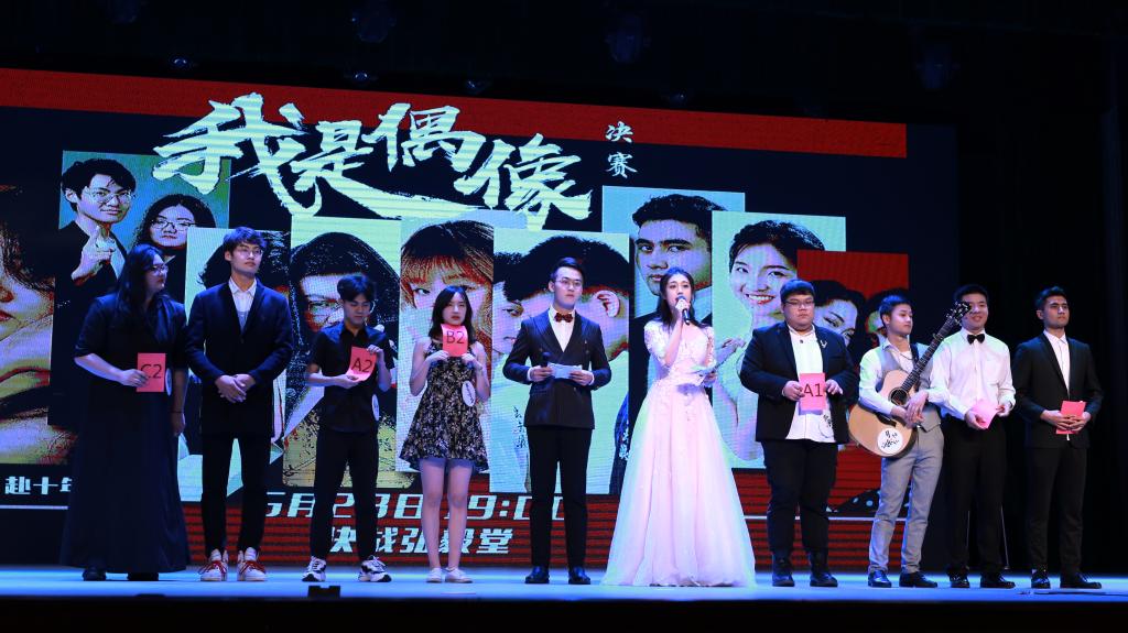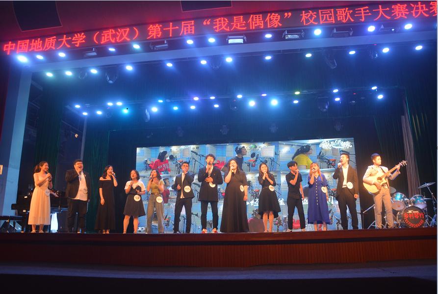 (通讯员:张康 摄影:经管文艺部)2019年05月28日晚7:00。第十届“我是偶像”校园歌手大赛决赛在弘毅堂隆重举行。我校艺术与传媒学院音乐系主任赵飞,音乐系教师刘雨薇,音乐系教师郭美岑,楚天音乐广播午间节目制作人、资深音乐DJ Candy,楚天音乐广播午间节目主持人大洋,湖北广播电视台音乐广播部新媒体及大型活动主理人、江湖音乐节舞台总监小水担任评委;学院党委书记杨昌锐,校学工处副处长苏洪涛,院党委副书记沈波,各学院教师、辅导员出席活动,各学院本、研学生千余人到场观看。
