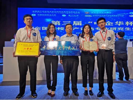 2019年6月23日晚,第三届“中企华杯”全国高校资产评估专业研究生知识竞赛在首都经济贸易大学琢玉讲堂落下帷幕。在我院朱冬元教授带领下,由资产评估专业研究生曹君茹、阴朝旭、于春雪和樊帆组成的vwin德赢ac米兰官方网(武汉)代表队,在全国25支高校参赛队伍中脱颖而出,总成绩排名第三,斩获二等奖!朱冬元教授获得优秀指导教师奖。