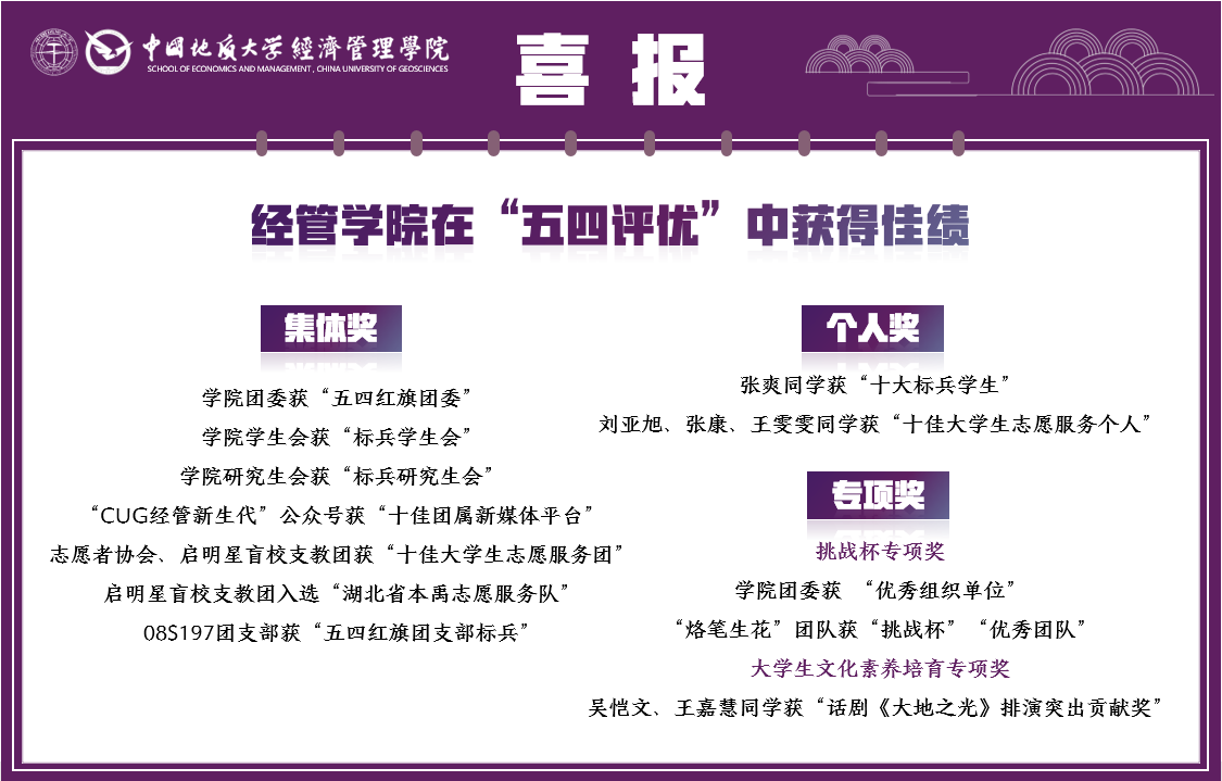 微信公众号“CUG经管新生代”荣获“十佳团属新媒体平台” !
