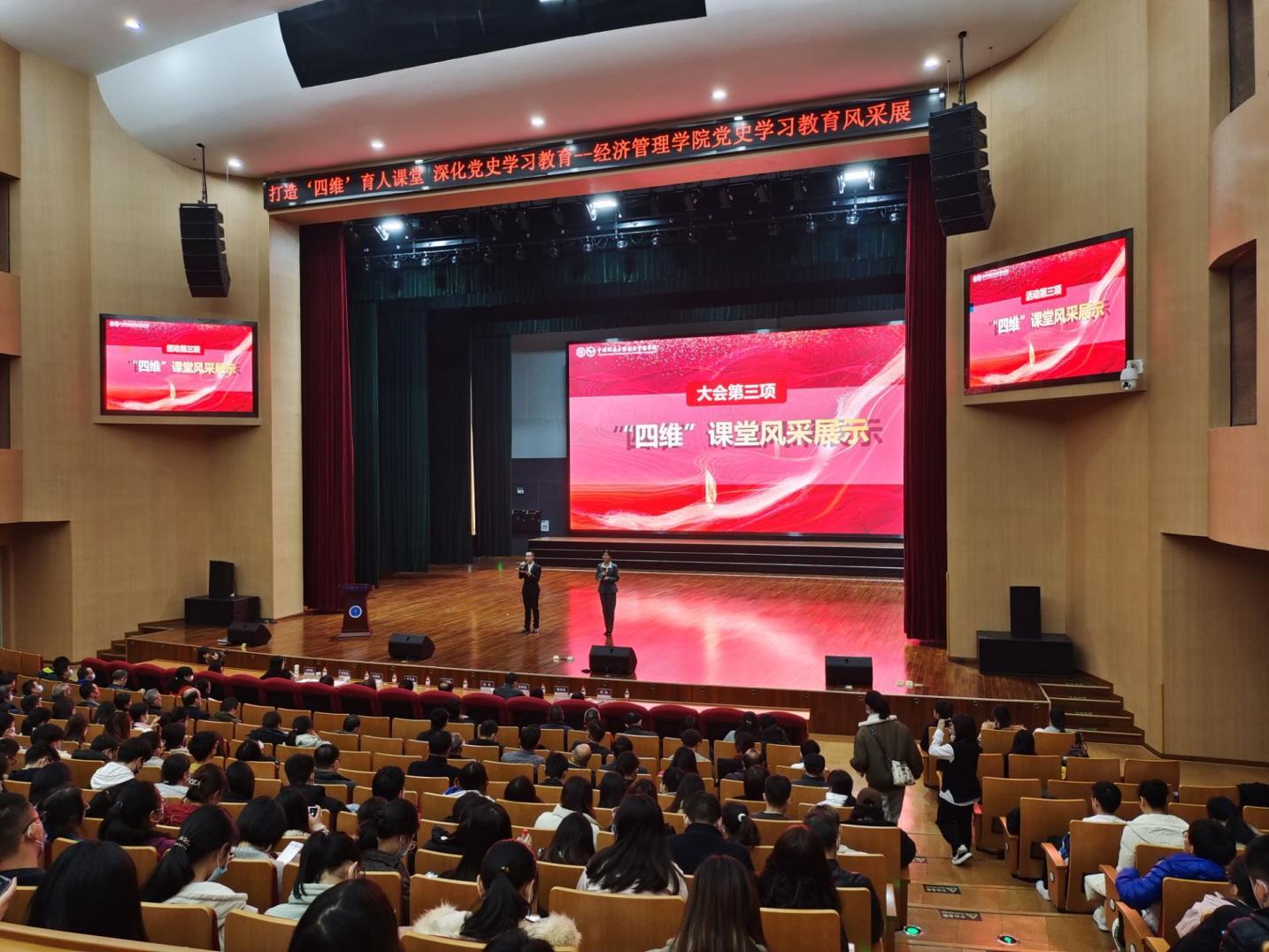 唐辉明作总结讲话。他充分肯定了经管学院党委开展党史学习教育的阶段性成效和此次“四维”课堂展示活动,并带领在场师生深入学习了党的十九届六中全会精神。他指出,学院党委要切实担负起主体责任,深入推进党史学习教育。一是要深化理论研究阐释,立足学科特色创新建设课程思政和通识课程,将十九届六中全会精神有机融入教育教学,实现思政课程与课程思政深度融合,促进十九届六中全会精神进课堂、进教材、进头脑。二是要深入推进“我为师生办实事”实践活动,打好党史学习教育“收官战”。要推动“办实事”与育人实践有效融合,与社会实践活动、志愿服务活动相结合,培养青年学子专业报国情怀,增强知行合一本领。他勉励广大师生,切实将党史学习教育成效转化为“开新局”的强大动力,营造干事创业的良好氛围,推动学院事业发展再上新台阶。