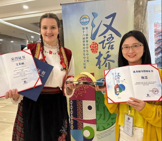 10月30日,第16届“汉语桥”世界中学生中文比赛落下帷幕,诺维萨德大学孔子学院学员艾米丽喜获一等奖。艾米丽获得来华攻读学位课程的国际中文教师奖学金,并被授予“汉语大使”称号;诺大孔院教师陈慧获得“优秀辅导教师”证书。这是诺大孔院在“汉语桥”比赛中取得的新突破。