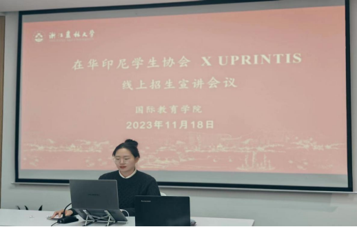 参会人员各自分享了在国际生招生领域的经验和见解、在杭学习及生活经验等。国教学院招生教师、X Uprintis工作人员和在杭印尼学生代表从不同角度和维度,为线上参会者提供申请指导和成功经验分享,助力他们更好地完成申请。学院招生教师代表从校园文化、国际生活动等方面,全方位展示学校的国际化氛围,介绍了学校国际化专业设置、师资力量和培养目标,并重点介绍了学校各层次优等生奖学金项目的优势、特色及申请资格条件,为申请者提供可靠依据。