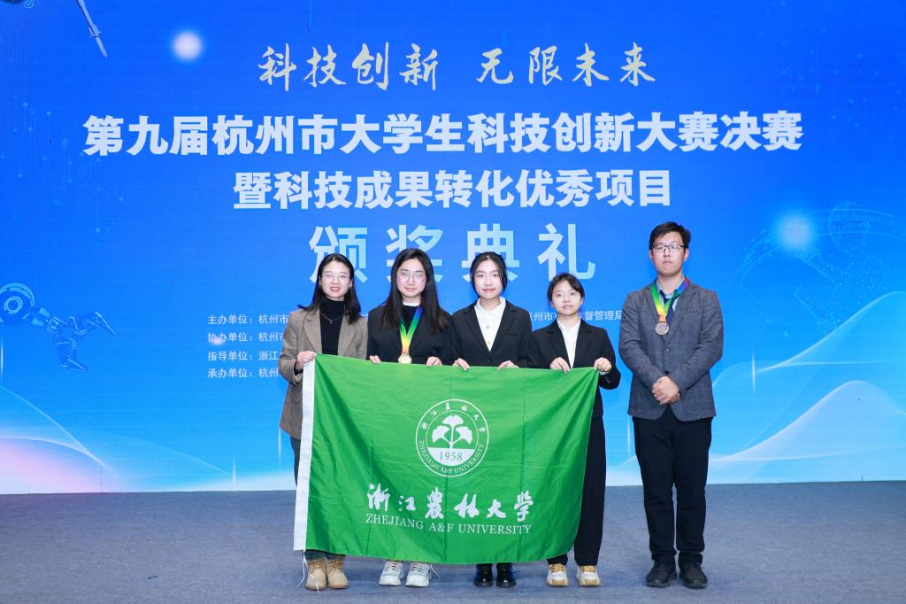 11月20日,第九届杭州市大学生科技创新大赛决赛暨科技成果转化优秀项目颁奖典礼在杭州市金沙湖大剧院举办。本次大赛由杭州市科学技术协会、杭州市教育局、杭州市科学技术局、杭州市市场监督管理局、共青团杭州市委共同主办,杭州市上城区科学技术协会、杭州市钱塘区科学技术协会等单位联合承办,杭州市相关部门领导及参赛师生代表参加。