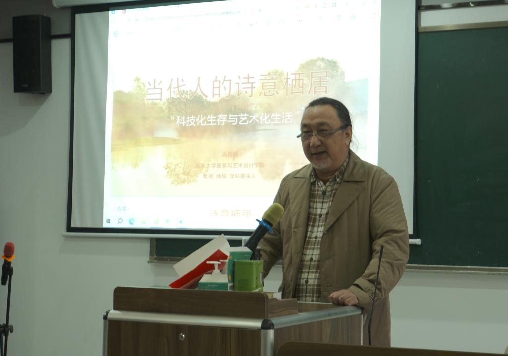 12月5日,艺术学院邀请到全国艺术专业学位研究生教育指导委员会委员、教育部设计学类专业教育指导委员会委员、东华大学服装与艺术设计学院博士生导师冯信群教授,以《当代人的诗意栖居——科技化生存与艺术化生活》为题作主题讲座。本次讲座由艺术学院院长王小德主持,学院领导班子成员及专业负责人、师生代表参加。
