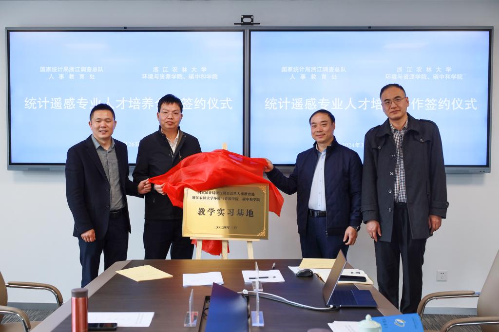 3月26日,环资院、碳中和学院与国家统计局浙江调查总队“人才培养合作签约暨实习基地授牌仪式”在浙江调查总队举行。环资院、碳中和学院相关负责人、地信专业负责人及专业教师代表,国家统计局浙江调查总队人事教育处处长毛显进、农业调查处处长金伟刚、农业调查处副处长倪建春等人出席了仪式。