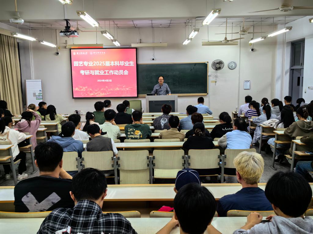 4月2日晚,园艺学院举行2025届本科毕业生考研与就业工作动员会。学院党委书记何振波、学院学生工作负责人、全体辅导员、2025届本科毕业生参加动员会。