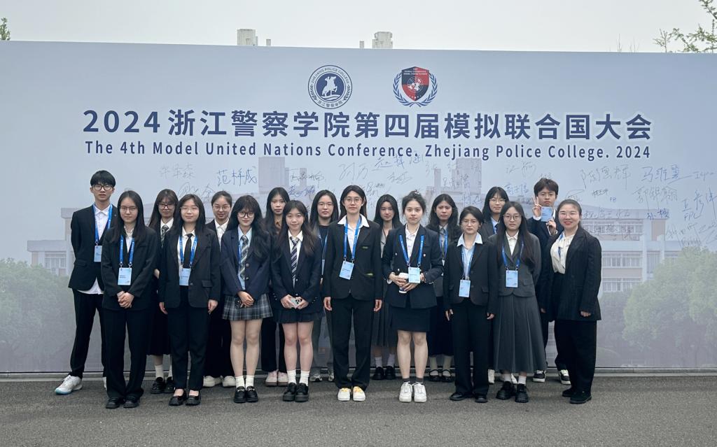 2024年4月12日至14日,校模拟联合国协会指导老师带领beat365官网学生代表团共17名学生,赴浙江警察学院滨江校区参加第四届模拟联合国大会。同学们分别进入联合国粮农组织(FAO)、主新闻中心(MPC)、国际刑警组织、安理会担任代表,完整参加了三天会期。