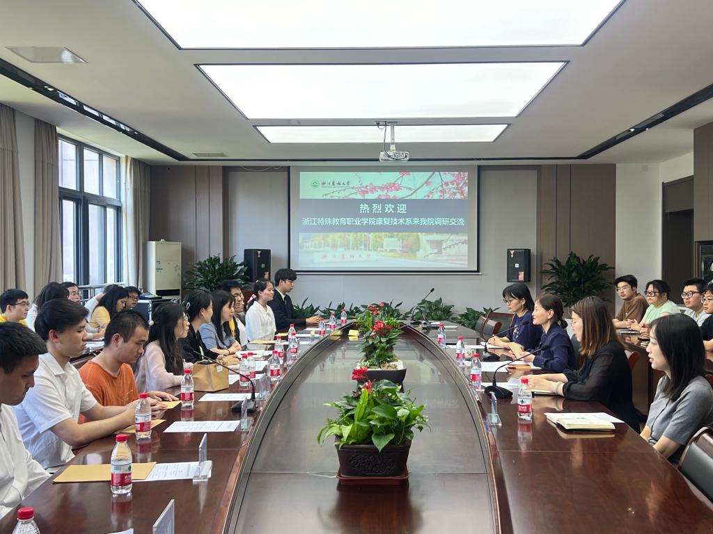 黄灵芝介绍了浙江特殊教育职业学院康复技术系的基本情况及基层党建工作的特色和亮点,分享了人才培养和党建特色品牌创建经验。双方表示,未来进一步加强党建共建,助力人才培养。