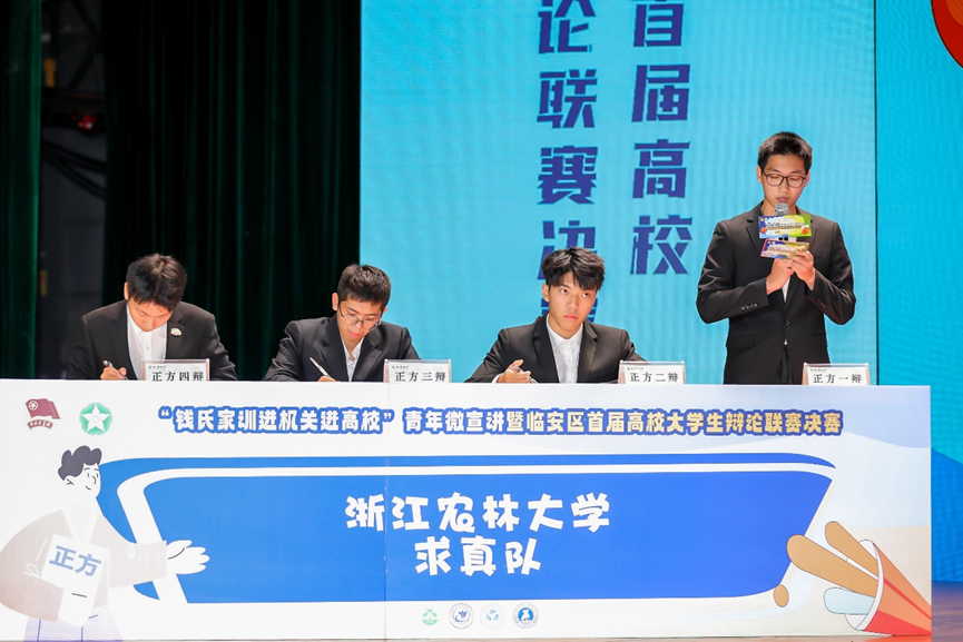 在首届临安区高校大学生辩论联赛中,beat365平台唯一官网和浙江警察学院两支队伍围绕“‘在城市’/‘去乡村’工作是当代青年人的好出路”展开激烈辩论。比赛过程中,双方辩手字字珠玑,句句铿锵,发言或直抒胸臆,或语锋敏捷,各据营垒,慷慨激昂,既体现了团队成员间的默契配合,贡献了天目青年的思辨力量,也展现了临安区大学生的青春风采。