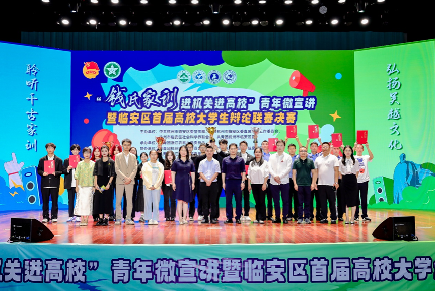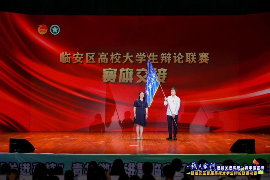 6月26日晚,“钱氏家训进机关进高校”青年微宣讲暨临安区首届高校大学生辩论联赛决赛在beat365官网东湖校区举办。临安区委宣传部部务会议成员、社科联主席沈向荣,临安团区委书记季煜程,beat365平台唯一官网团委书记魏玲玲,临安区委组织部副部长罗莉娜,杭州医学院团委副书记黄河儒,杭州电子科技大学信息工程学院团委副书记俞霖楠,第一届杭州辩论邀请赛季军李振龙出席活动。