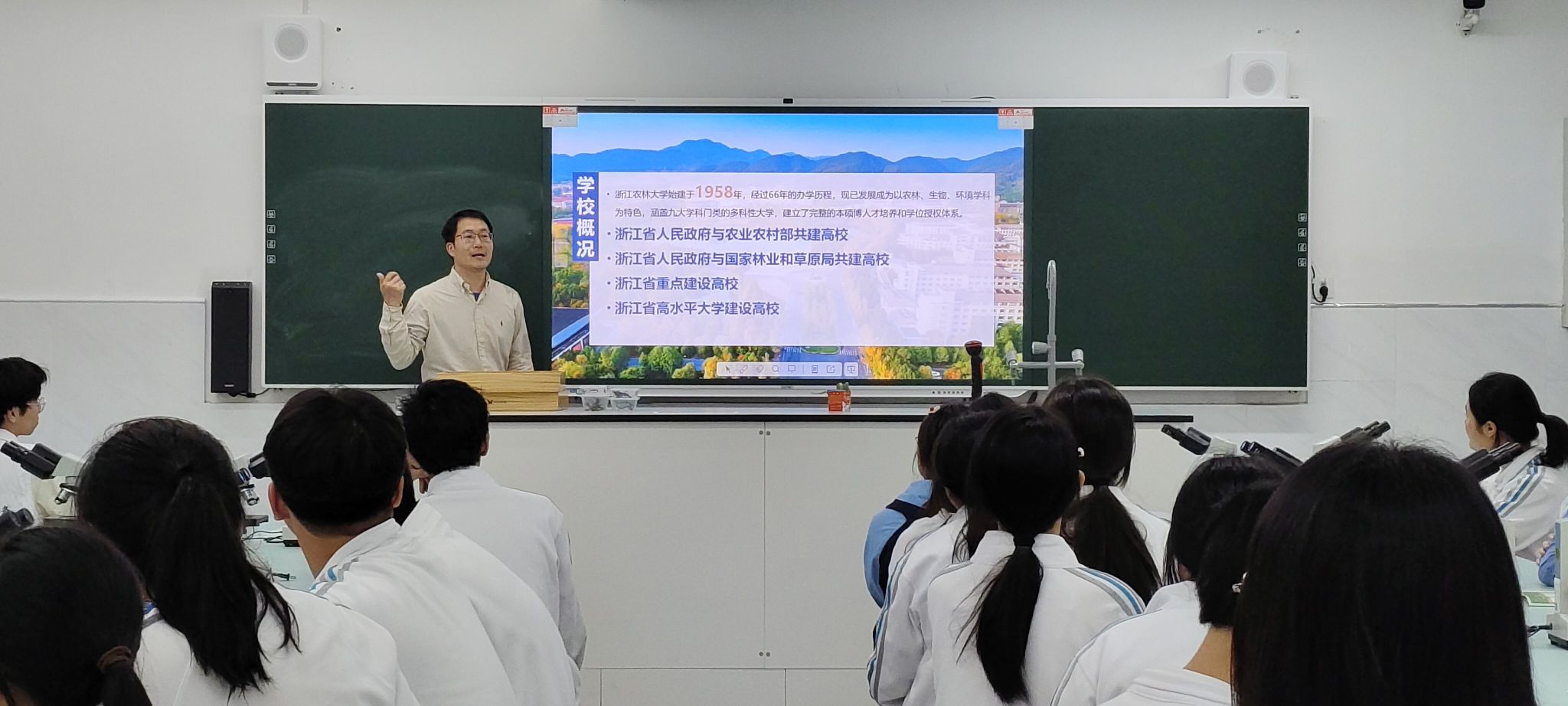 4月21日,农学院受邀赴杭州市西湖高级中学开展特色招生宣传活动。学院相关负责人、辅导员代表及大学生昆虫爱好者协会成员参与此次招生宣传活动。