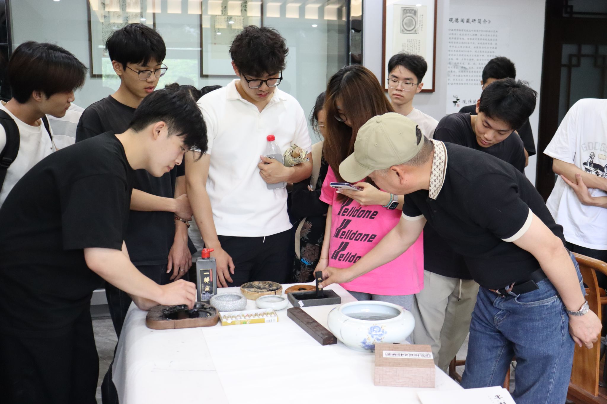 叶剑鸿以砚文化为核心,结合自身研究与艺术实践,系统梳理了砚台的历史脉络及其与书画艺术的内在联系。通过丰富的藏品实例,他阐释了“器以载道”的东方智慧,并现场展示了书画创作技艺,让师生在沉浸式体验中实现文化自觉与艺术创造能力的双重提升。
