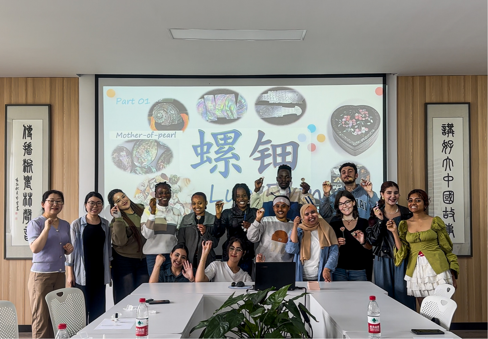 近日,国教学院举办了“匠心传承,钿艺生辉”——非遗螺钿文化体验之旅活动。来自塞尔维亚、土耳其、摩洛哥、孟加拉国、赞比亚等国的十余位国际学生齐聚一堂,共赴这场指尖上的非遗之旅。