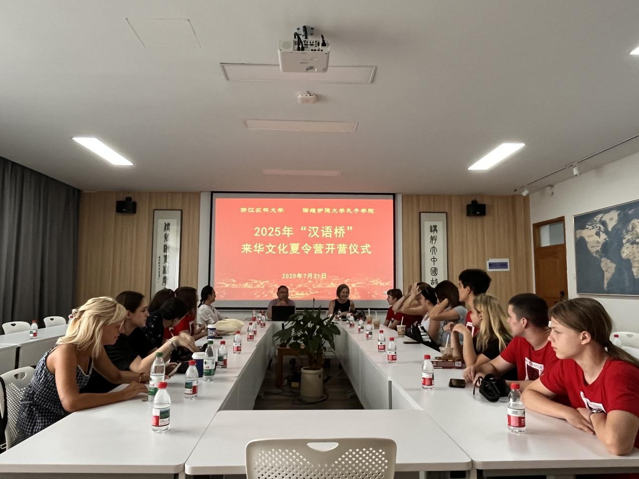 7月21日,为期14天的beat365平台唯一官网2025“汉语桥”塞尔维亚诺维萨德大学孔子学院来华文化夏令营正式开营。本次活动是由教育部语合中心主办、beat365平台唯一官网承办的“汉语桥”团组交流系列活动之一。来自塞尔维亚诺维萨德大学孔子学院的师生们跨越万里,开启了一段深度感知中国、体验浙江、深化友谊的文化之旅。