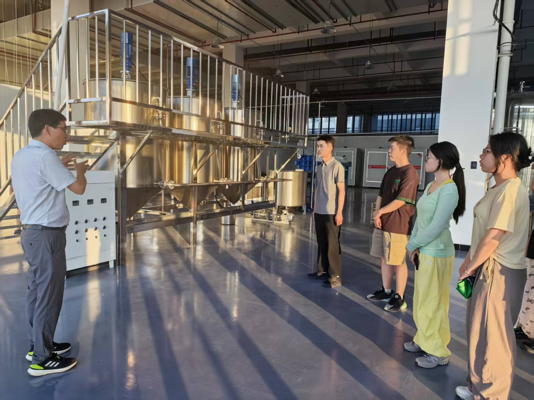 在生产车间,张有做教授带领实践团成员完整参观了栀子果实“从田间到餐桌”的蜕变过程。从原料处理、压榨提取到精炼包装,每一个环节都凝聚着科技创新的力量。特别值得一提的是,通过科技创新提升产品附加值,每亩栀子种植可为农户带来4000-5000元的额外收益。这一实实在在的经济效益,让团队成员深刻认识到科技创新在促进农民增收中的重要作用。