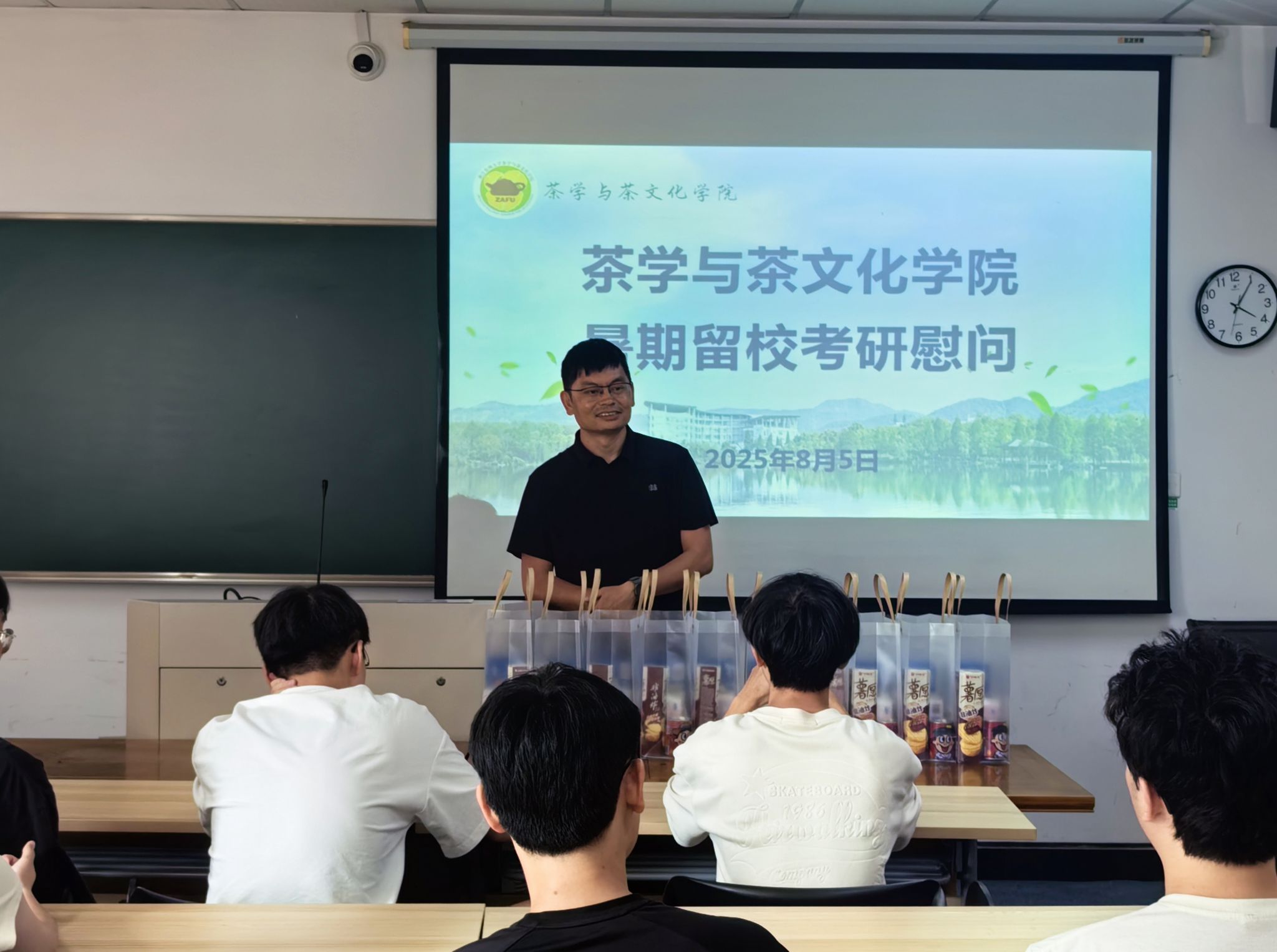 8月5日下午,茶学院在学院楼201开展暑期留校学生考研慰问,学院党总支书记张路、辅导员参加本次活动,并为奋战在考研路上的学子们送去关怀与鼓励。