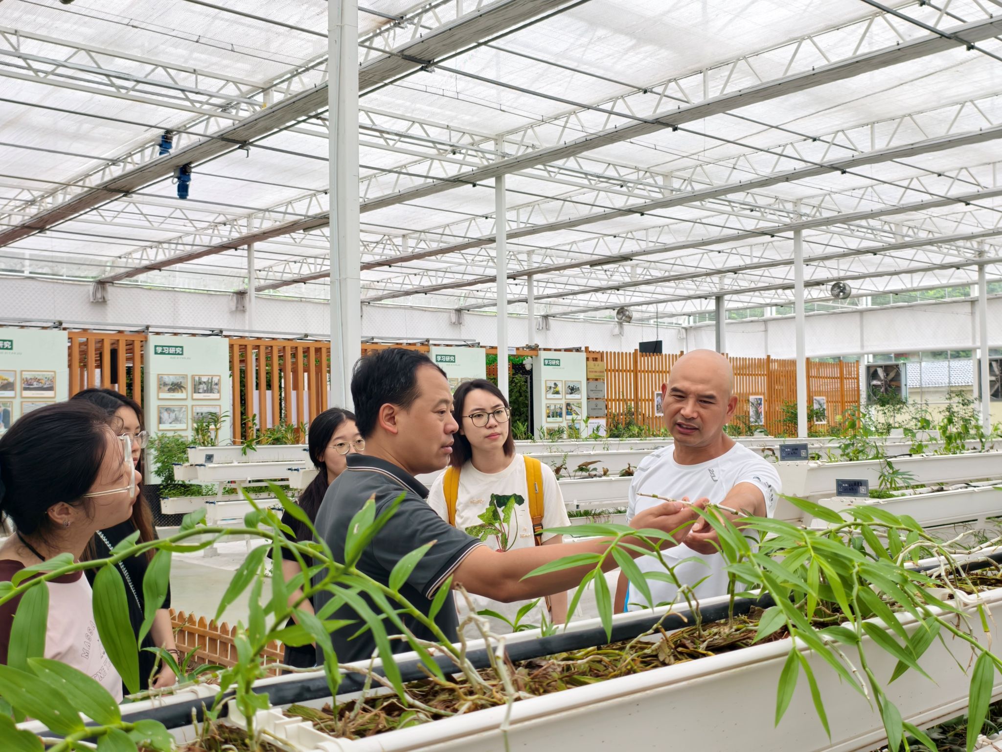 实践团首站到访繁育基地,其以“三区联动”打造教学场景,药科大观园借传感器和智能滴灌实现种植 “看天吃饭” 到 “数据说话”,学生实操技术,推动传统技艺与现代科技融合。同日,探访“黄精之乡”,在黄精产业基地见证“中药材+坚果”创新模式:黄精酿酒厂研发跨界产品,浙江闲人谷有限公司推出“内服+外熏”调理方式。周老师与企业就产品功能验证达成合作意向,为学术研发注入产业需求。