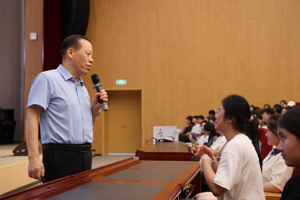 讲座伊始,张敏生借助图片,点明入学初期做好大学规划、树立远大理想的必要性,鼓励新生即刻行动,踏上逐梦征程。他分享诸多优秀校友的奋斗故事,激励新生养成“肯干、实干、能干”的三干品质,全面提升个人能力。针对大学可能面临的挫折,张敏生以励志校友左力的经历为例,引导新生正确看待挫折,以乐观心态应对困难,将挫折转化为成长养分。