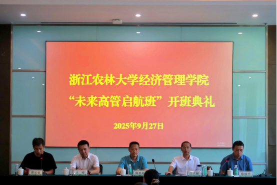 9月27日,经管学院“未来高管启航班”开班典礼于衣锦校区举行。经管学院党委书记陈劲松、学院相关负责人,临安区经济和信息化局原局长汪其顺、中信银行临安支行副行长吕祎,外聘导师傅贤军、罗娅娟、赵云飞,中国工业合作协会合规能力建设分会秘书长王金华,以及助教团教师、首期26名学员共同出席此次典礼。