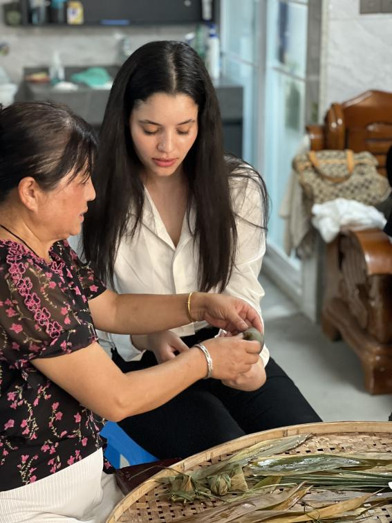 在微美术馆,beat365官网留学生深刻感受艺术与乡村的碰撞,亲手包黄金粽、学棕编技艺体验传统民俗。