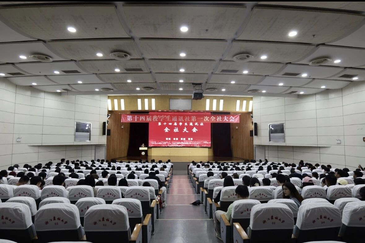 10月18日,第十四届学生通讯社第一次全社大会在东湖校区图书馆第一报告厅召开。校新闻中心主任,宣传部、教工部副部长陈胜伟,校团委书记胡云云,校学工部负责人等出席大会。
