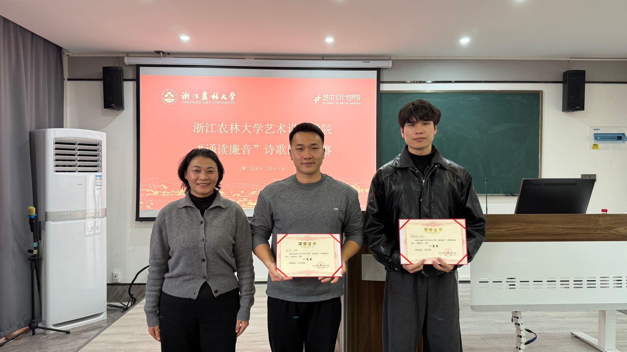其中,沈阳和黄梓轩同学荣获一等奖。沈阳的朗诵作品《清贫—方志敏》和黄梓轩的朗诵作品《青春诵廉音,丹心照征程》结合“一二·九”运动的历史背景,深情回望革命岁月,歌颂了先辈们为国家、为民族挺身而出的革命风骨与爱国情怀。