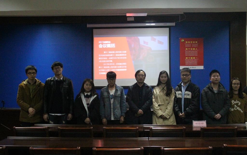 活动采取代表发言、老师点评的方式进行。学生代表就“两会”精神学习发表了各自的见解;相关专业老师就论述党的建设问题、“两会”热议话题——如何治理雾霾、城市环境保护管理问题、思想政治教育话语转型问题等提出了自己的看法。