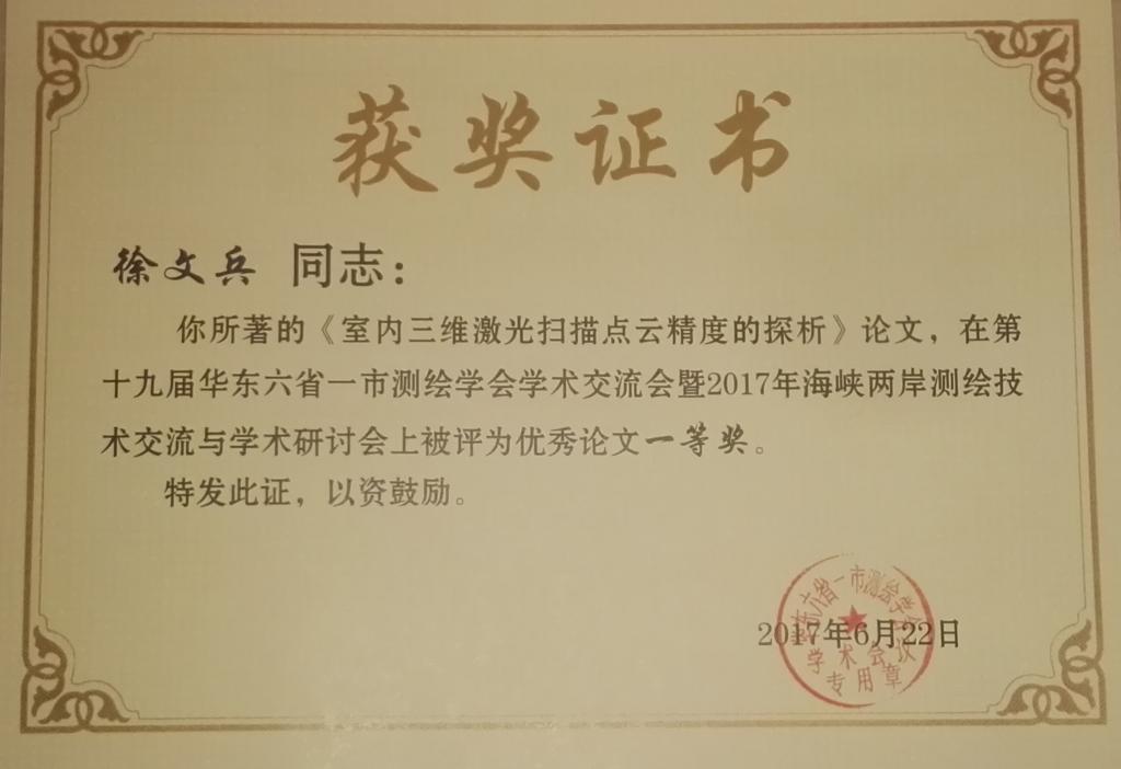 测绘学会组织专家认真评审参赛论文300余篇,共评出优秀论文一等奖14篇,二等奖21篇,三等奖35篇。beat365官网测绘教师徐文兵等撰写的《室内三维激光扫描点云精度的探析》论文被评为优秀论文一等奖。