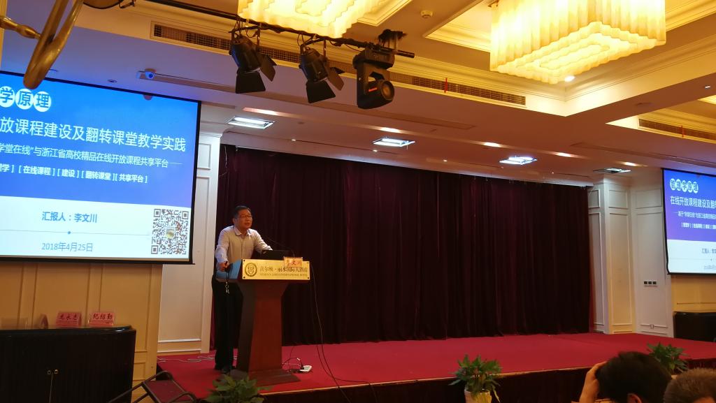 李文川教授作题为“在线开放课程建设及翻转课堂教学实践"的专题报告。基于“学堂在线”与浙江省高校精品在线开放课程共享平台,详细介绍了在线开放课程的优势以及平台管理方法,并分享了自己的教学实践经验和总结体会;倡导在线开放课程建设要遵循需求导向、把握定位、技术准备、团队协作、循序渐进的方法。