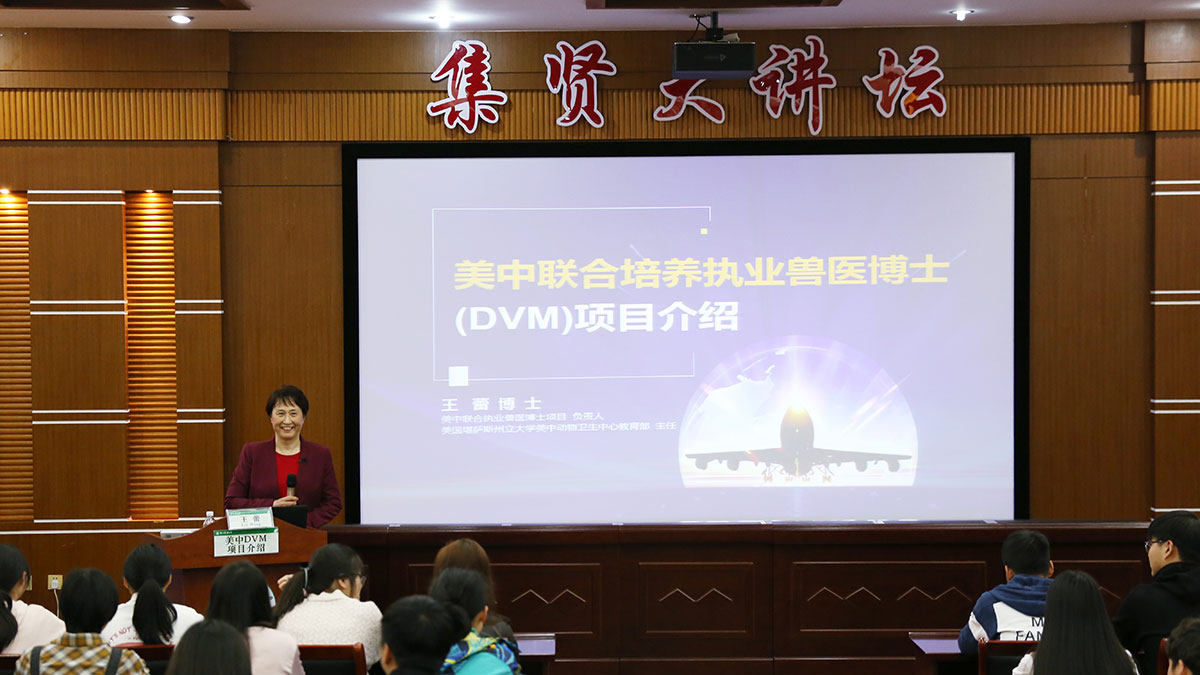 3月21日,中美联合培养执业兽医博士(DVM)奖学金项目报告会在beat365官网集贤大讲坛举行。美中动物卫生中心教育主管、美国堪萨斯州立大学兽医学院王蕾博士做专题报告。会议由动科院宋厚辉院长主持。 beat365官网动物医学专业和集贤学院新农班学生参加了报告会。