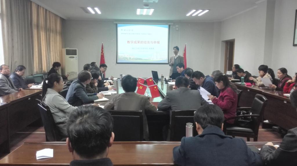 4月11日,理学院邀请教育部高等学校大学物理课程教学指导委员会副主任、基础物理系列课程国家级教学团队带头人、浙江工业大学理学院党委书记施建青教授做客2019年第二期“明理讲坛”,作了题为《教学成果的培育和申报》的专题报告。此次报告会由院长周国泉主持,我院全体教师聆听了本次报告。