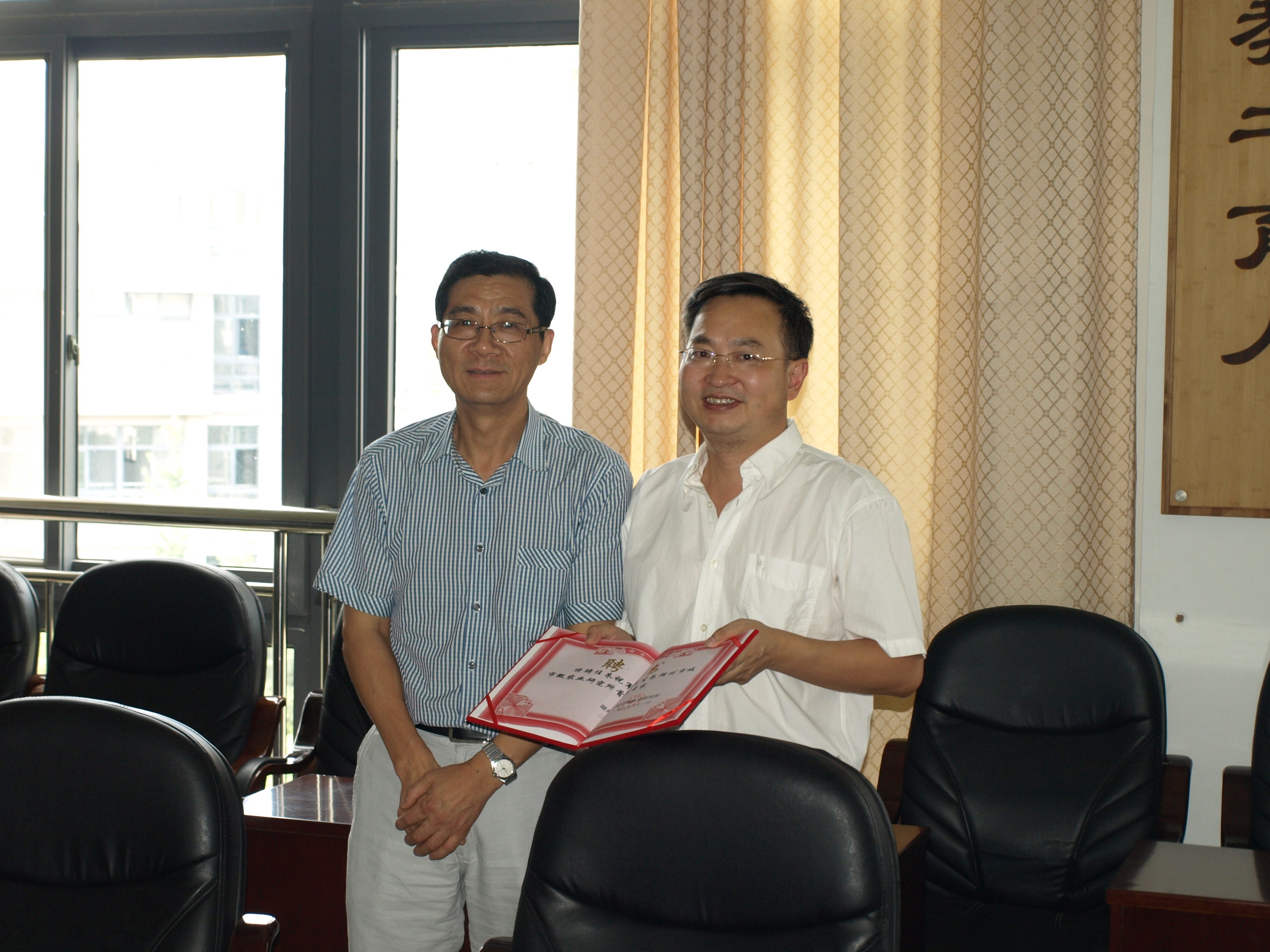 会上,学院与湖州市微农业研究所签订了合作协议,杨建明局长向朱祝军颁发了首席专家聘书。