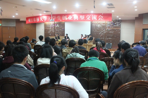 浙农林大新闻网讯 11月8日,由学生处就业指导服务中心主办、大学生创业社承办的大学生创业典型交流会在绿梦休闲吧成功举办。学工部、集贤学院相关负责人、5名创业典型代表及来自各二级学院的150余名师生参加交流会。