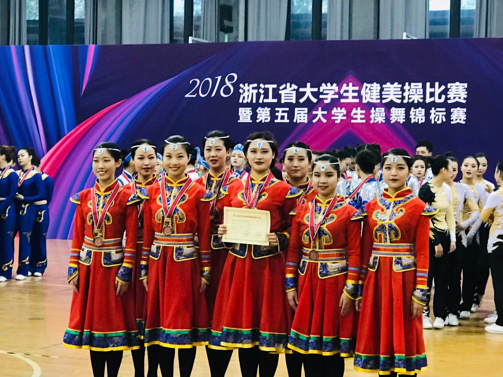 近日、由浙江省教育厅、浙江省体育局主办的浙江省大学生健美操比赛暨第五届大学生操舞锦标赛在中国美术学院隆重举行。beat365官网beat365官网操舞队参加了高校甲组拉丁舞六人女子集体舞、全民健身舞、拉丁多项组和竞技健美操女子单项等共5项比赛并获得好成绩。