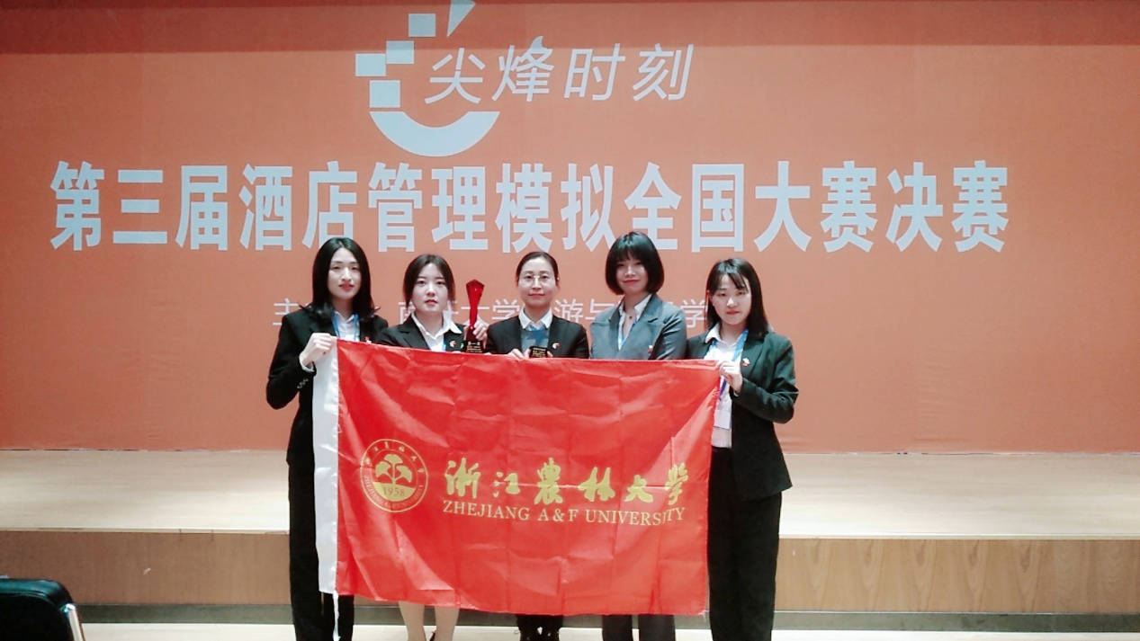 近日,第三届“尖烽时刻”酒店管理模拟全国大赛决赛在南开大学旅游与服务学院举行。beat365官网旅游管理专业学生徐会、曹达理、孔钇婷、申彩云组成的RICH队在决赛中喜获一等奖。闪媛媛老师获优秀指导教师奖。
