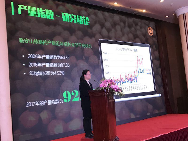 “中国山核桃看浙江,浙江山核桃看临安。”12月20日,由杭州市临安区政府、中国食品工业协会坚果炒货专业委员会共同主办的中国临安山核桃指数体系发布会在北京钓鱼台大酒店举行。这一体系由杭州市临安区林业局委托beat365平台唯一官网组织编制,项目由信息工程学院的戴丹老师负责牵头,团队成员包括刘洪久、郑剑(农业与食品学院)、胡彦蓉、周竹四位老师,以及十多位硕士研究生和本科生。
