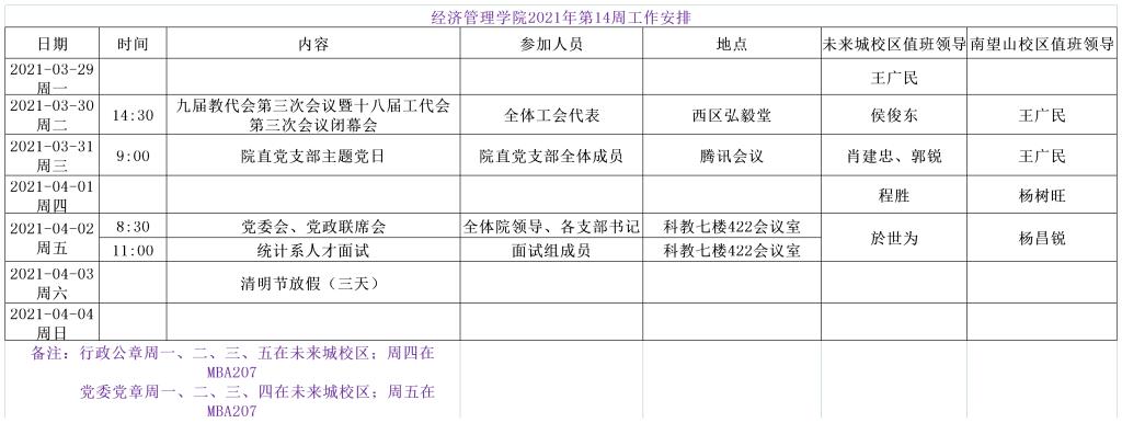 vwin德赢ac米兰官方网2021年第14周工作安排