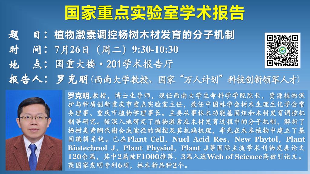 讲座预告:植物激素调控杨树木材发育的分子机制