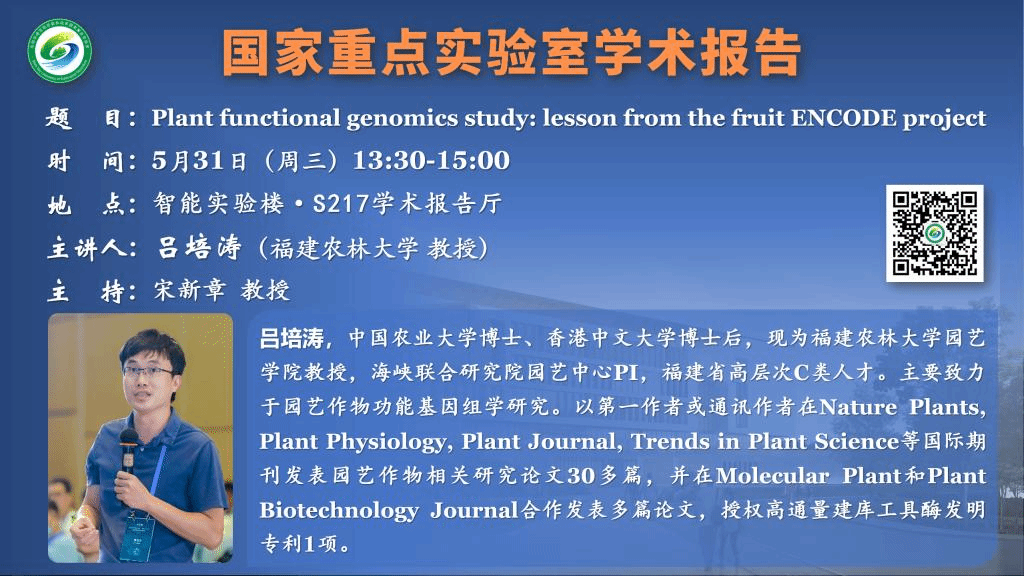 讲座预告:Plant functional genomics study: lesson from the fruit ENCODE project