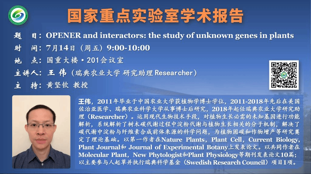 讲座预告:OPENER and interactors: the study of unknown genes in plants
