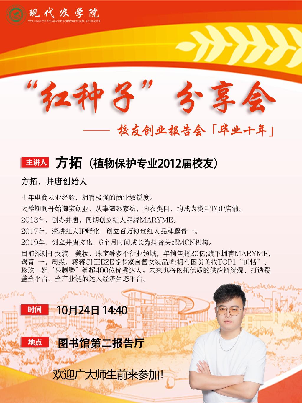 讲座预告:“红种子”分享会——校友创业报告会「毕业十年」