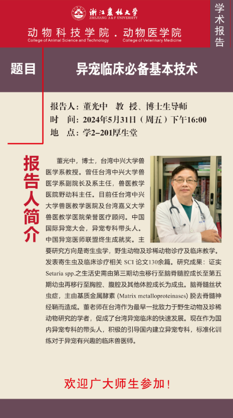 【发布日期: 2024-05-21】 【来源:动科动医学院 】 【作者:余紫薇】 【编辑:郝璞玉】 【点击量: