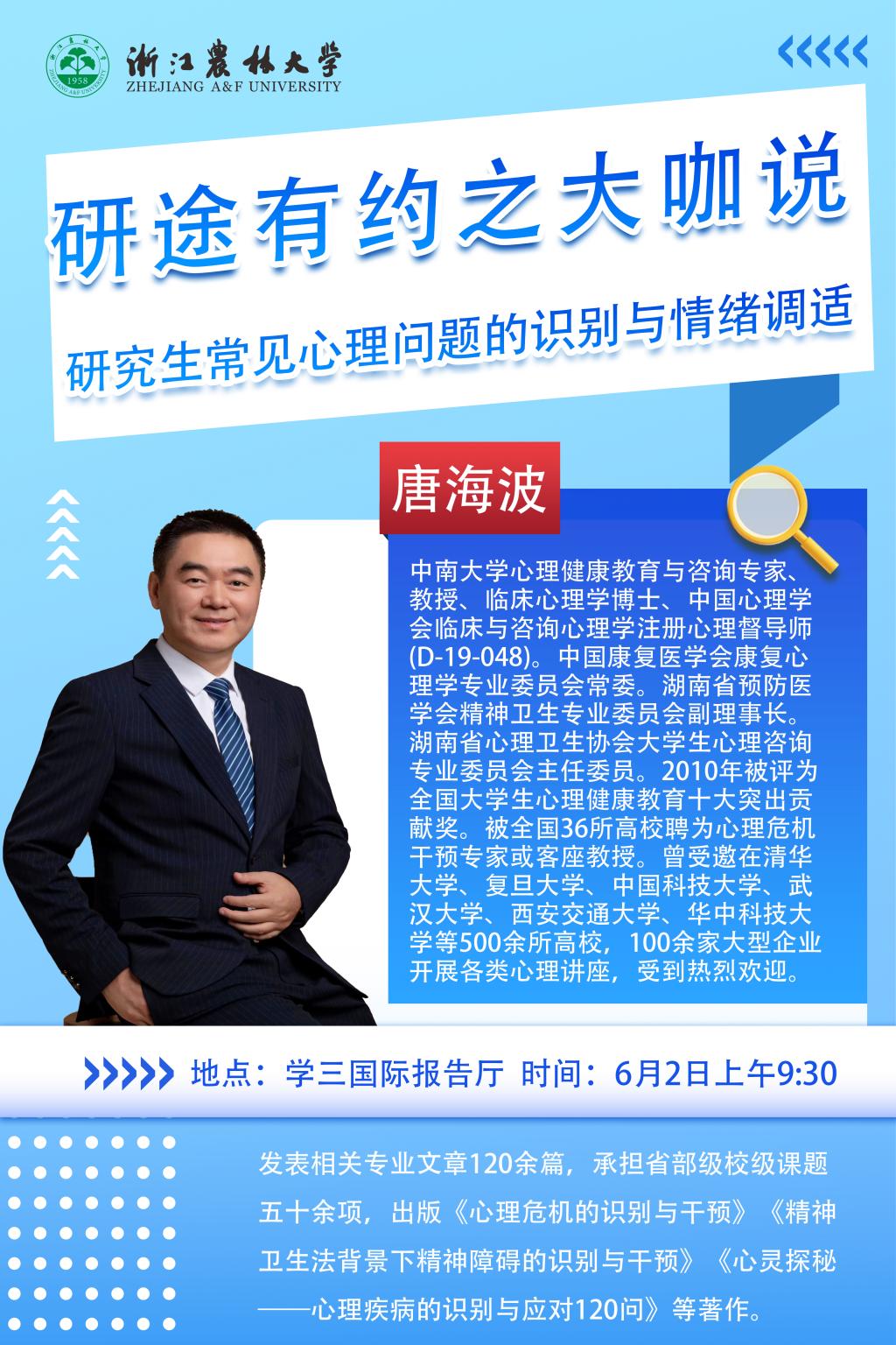 为切实加强研究生心理健康教育工作,提升研究生辅导员以及研究生心理委员队伍能力水平,帮助研究生树立健康心理意识,增强心理调适能力,研工部将于6月2日(星期日)上午举办研究生心理健康教育讲座,现将有关事项通知如下: