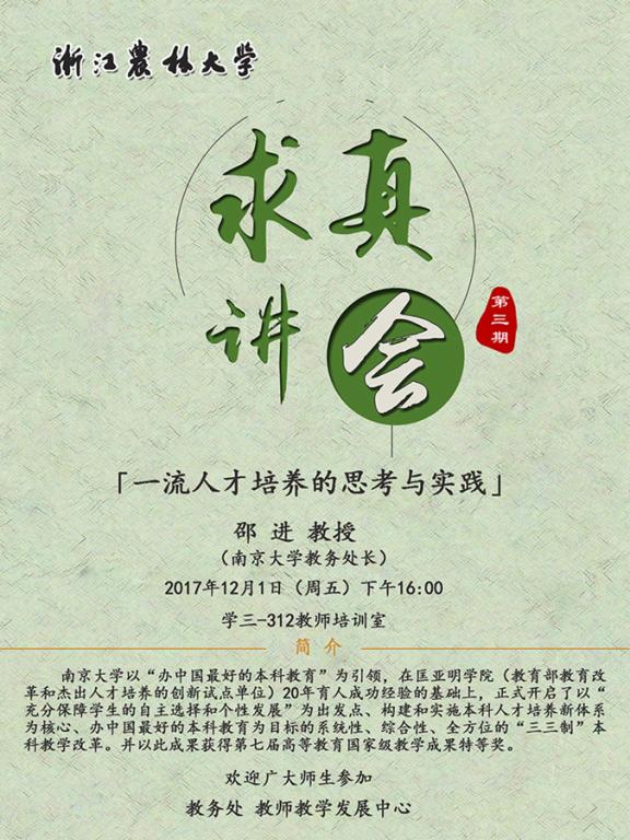 第三期“求真讲会”:一流人才培养的思考与实践