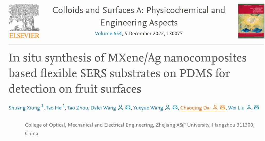 拉曼光谱作为一种快速无损的检测被广泛应用于生物检测中,在前期工作中,团队以贵金属和MXene为复合衬底,对低浓度的农药进行检测,可实现微量农药的检测,为生态农业提供了可靠的技术支撑,这一项工作发表在Colloids and Surfaces A: Physicochemical and Engineering Aspects(中科院2区,IF=5.518),beat365平台唯一官网为唯一单位,通信作者为王悦悦教授、戴朝卿教授、刘威副教授。