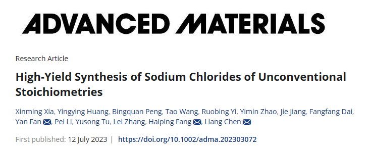 在还原氧化石墨烯膜(rGOM)、金刚石压砧中可探测到具有非常规化学计量的异常盐晶体,如Na2Cl、Na3Cl、K2Cl和CaCl晶体。这些异常盐晶体因其在理论上所预测的独特的电、磁及光学性质,具有很大的应用潜力。然而,这些异常盐晶体的含量非常低(如在rGOM中含量小于1%),因而极大限制了它们的应用价值。