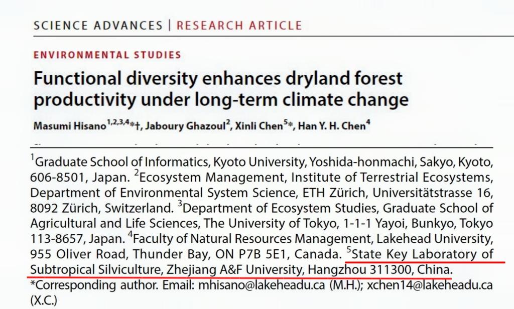 4月25日,环境与资源学院、碳中和学院陈信力教授等人在《Science》旗下国际权威期刊《ScienceAdvances》(中科院1区Top,IF=13.6)在线发表题为“Functional diversity enhances dryland forest productivity under long-term climate change”(长期气候变化下功能多样性增强了干旱森林的生产力)的研究论文,证明了在水分逐渐下降的压力下,树木多样性高的干旱森林仍能维持相对高的生产力水平。
