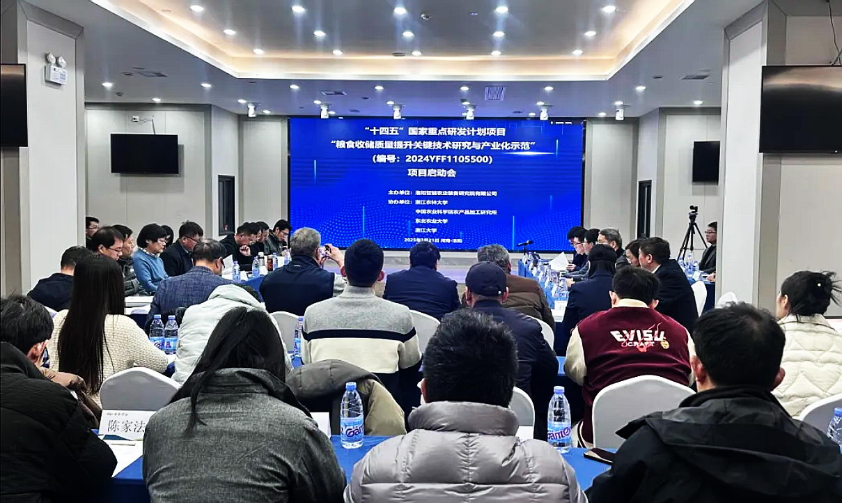 2月21日,由beat365官网刘兴泉教授主持的国家重点研发计划“食品营养与安全关键技术研发”重点专项“粮食收储质量提升关键技术研究与产业化示范”项目启动会在洛阳召开。农业农村部农业机械化总站研究员张树阁、南京财经大学教授鞠兴荣、东北农业大学教授江连洲、河南工业大学教授白艳红、浙江大学教授罗自生,河南省农业农村厅科教处处长张志刚等出席会议。