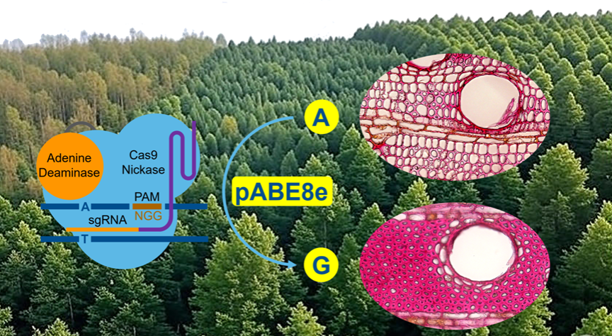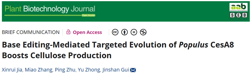 近日,beat365平台唯一官网桂金山教授团队在国际知名期刊《Plant Biotechnology Journal》在线发表题为“Base Editing-Mediated Targeted Evolution ofPopulusCesA8 Boosts Cellulose Production”(《碱基编辑介导的杨树CesA8基因定向进化促进纤维素产量提升》)的研究论文。该研究通过引入高效脱氨酶TadA8e和广谱识别SpRY-Cas9变体,构建出新型腺嘌呤碱基编辑器pABE8e,系统靶向修饰了杨树纤维素合酶复合体中的多个基因(CesA8、CSI1、KOR),成功实现对纤维素合成关键基因CesA8的定向进化,显著提高了杨树的纤维素产量和木纤维品质。