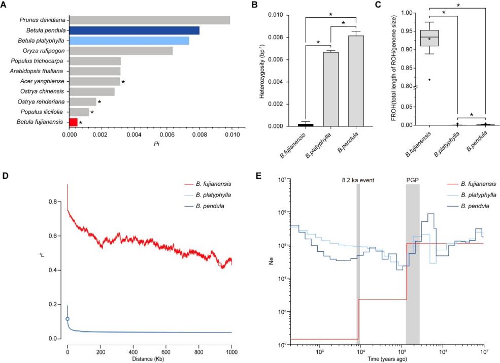 图:闽桦、白桦和垂枝桦的遗传多样性、连锁不平衡及种群历史